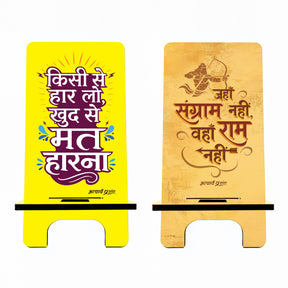 • Set: Combo of 2 Wooden-Finish MDF Phone Stands with Acharya Prashant Quotes